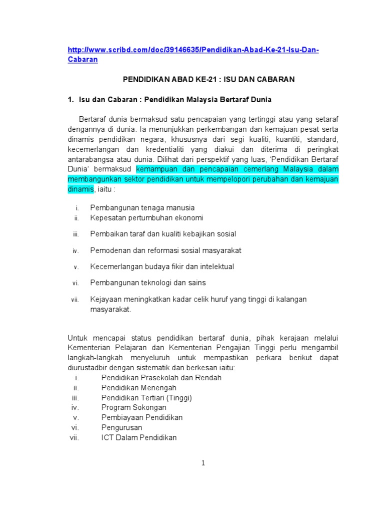 Pendidikan Abad Ke 21 Isu Dan Cabaran Pdf